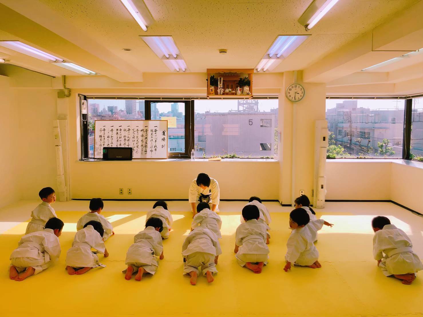 (大きな声に驚いて泣いてしまう子や、道着を着るのを嫌がる子もいますが、大丈夫。)
